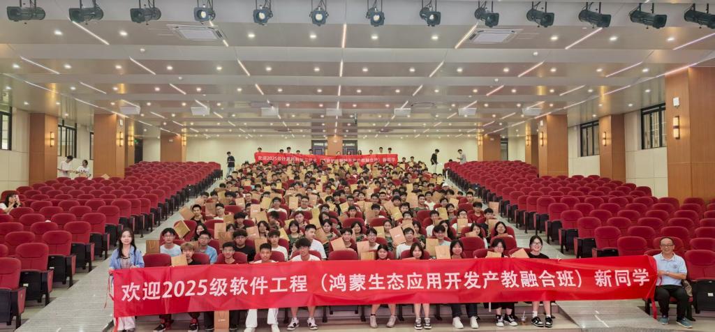 人工智能与数字经济产业学院副院长陈易平代表学院向新生表示热烈欢迎,同时表示双重祝贺:一是祝贺新生选择前景广阔的好专业,当前国家大力发展信创产业、推动鸿蒙操作系统及生态建设,未来鸿蒙生态与智能应用开发领域将产生百万级就业岗位,该专业与岗位高度匹配;二是祝贺新生选择产业学院,学院以OBE理念为指导,坚持需求导向,采用项目化课程模式,聚焦提升学生工程问题解决能力,致力于培养企业急需人才,助力学生实现 “实习即就业、实习就具备能力” 的目标。最后陈院寄语新生,强调所有收获都需对等付出,期待通过学院、企业与学生的共同努力,让每位新生在四年后成长为更优秀的自己。