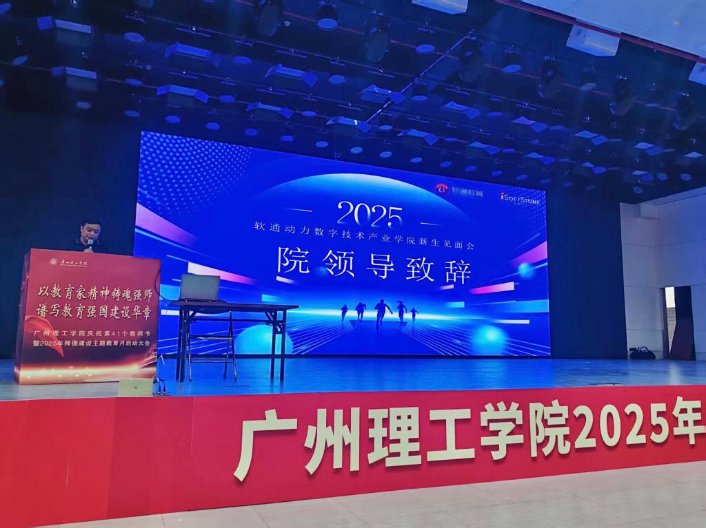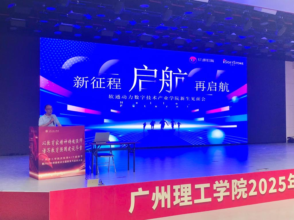 为帮助首批新生快速衔接“校企共生”培养模式,提前搭建与行业企业的沟通桥梁,9月7日,广州理工学院软通动力数字技术产业学院在白云校区13栋1号报告厅举办新生企业见面会。人工智能与数字经济产业学院全体新生、院领导、软通动力信息技术(集团)股份有限公司企业代表及技术总监齐聚现场,见面会由学院系主任魏星主持,全程围绕“认知行业、明确方向、赋能成长”展开,为新生开启校企协同育人的 “第一课”。