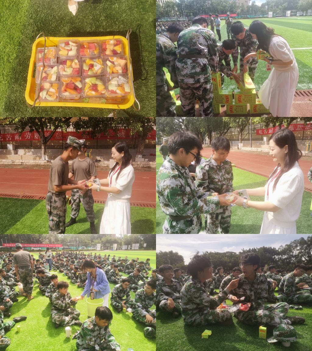 9月16日当天,软通动力项目经理与班主任携手抵达军训场地,教官迅速有序地集合学生,助班们第一时间与企业代表一同开启首批物资分发——新鲜爽口的水果果切、清热解暑的王老吉。“军训虽然辛苦,但收到这份惊喜特别开心!”接过果切与王老吉,学子们脸上洋溢着灿烂的笑容,疲惫也随之消散不少。分发过程中,项目经理与班主任还不时与学生交流,询问他们的军训感受,叮嘱大家注意防暑防晒,鼓励学子们以坚定的意志完成军训任务,在磨砺中成长;教官也对企业的暖心举动表示感谢,认为这份关怀将进一步激发学生们的训练热情。