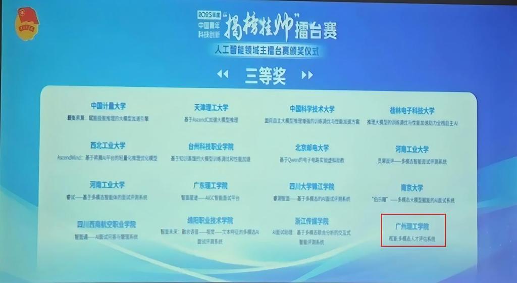 10月20日,第十九届“挑战杯”全国大学生课外学术科技作品竞赛的擂台赛——2025年中国青年科技创新“揭榜挂帅”擂台赛人工智能领域主擂台赛在华东理工大学落下帷幕,我校在这场国内青年科技创新的高水平赛事中强势突围,一举斩获国赛决赛的三等奖和优胜奖两项荣誉,以硬核科研成果与创新应用实践,彰显了学校在人工智能领域的人才培养质量与科研创新实力。