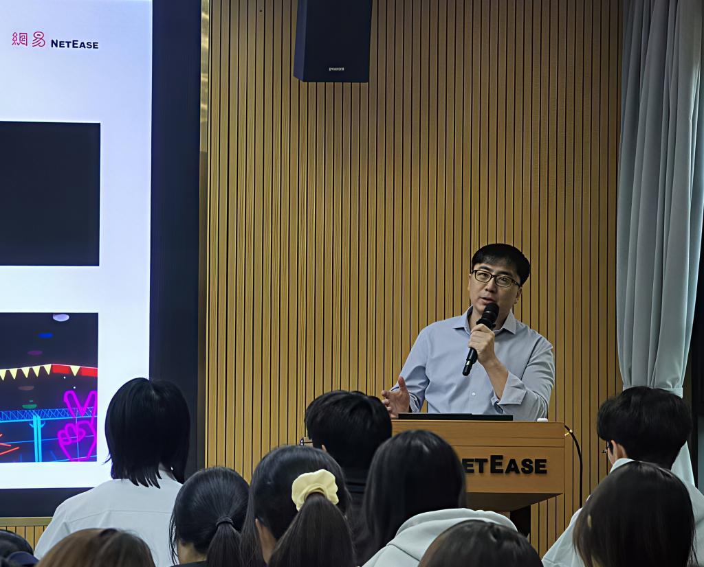 参访活动分两批次有序推进。10月22日,数字媒体技术 4-6 班及网络与新媒体 4 班率先启程;10月27日,网络与新媒体 5-6 班接续参与。同学们抵达网易广州总部园区后,两场高含金量行业讲座在培训室正式拉开参访序幕。围绕《AIGC 赋能行业发展的前沿趋势与未来人才需求展望》主题,10月22日由网易美术资产研发总监、高级工程师姜小虎领衔分享,10月27日则特邀网易数智 AI 应用技能研发工程师邓爱花接力开讲。两位行业资深工程师结合实际案例深入浅出,系统解析 AIGC 技术在数字媒体领域的多元应用场景与发展前景,清晰阐明新时代行业对专业人才的核心能力要求;