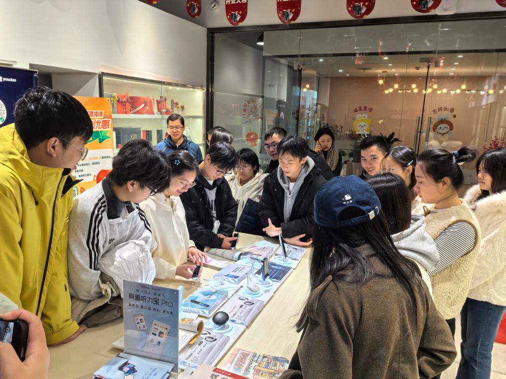19日上午,参访团踏入网易公司,在网易有道产教融合中心助理副总裁王辉的引领下,沉浸式感受 AI 教育产品“以用户为中心”的研发逻辑,为竞赛课题优化提供全新视角。在网易有道智能硬件展区内,师生们围聚在 “有道词典笔” 体验台前,亲手操作这款集成 AI 口语批改、个性化学习报告生成等功能的智能产品。实时纠错的精准度、贴合学习场景的功能设计,让大家对 “技术如何解决真问题” 有了直观认知。王辉总裁在专题竞赛培训讲座中展示的人才观3.0——“有热爱、会思考、脸皮厚、能成事”这十二字准则,引得学生们频频点头。他们表示:“这与我们做竞赛课题所需的‘韧性’完全契合。”王总裁强调,要以人为本,从人的需求出发,让科技服务于人。就像国创赛里的产业赛道命题,一切都需基于现有的真实需求,抓住痛点,攻克难点,才能够实现突破。从0到1是创新,从1到1.1同样也是创新。