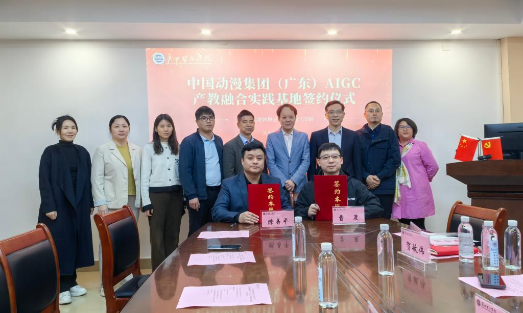 1月20日,广东省互联网协会、中国动漫集团广东AIGC培训产教融合基地单位蓝色伽马(广东)数字科技有限公司(以下简称蓝色伽马),与广州理工学院人工智能与数字经济产业学院(以下简称产业学院)共同签署了校企合作协议,正式开始筹建AIGC产教融合实践基地。广东省互联网协会秘书长徐强、蓝色伽马(广东)数字科技有限公司副总经理曹晨,广州理工学院产业学院院长贺敏伟等一行校企代表出席了签约仪式。